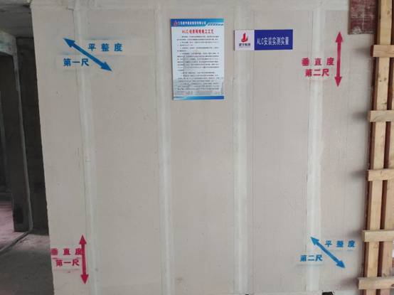 全體觀摩人員同樣分成了三組,在項目現(xiàn)場管理人員的帶領下深入施工場地,重點觀摩了14#樓、22#樓、26#樓粉刷施工工藝樣板、實測實量樣板;預制剪力墻、預制疊合板、預制樓梯、ALC板等施工成型質(zhì)量情況。