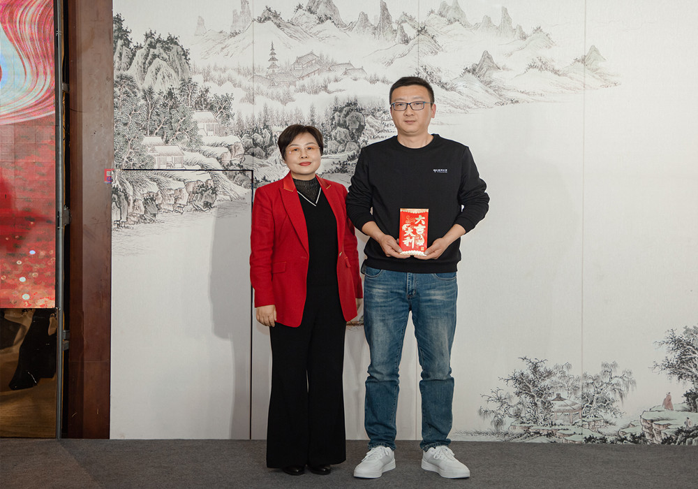 董事長管民良攜手皇華國際大酒店董事長王衛(wèi)紅共同為晚會優(yōu)秀節(jié)目表演者現場頒獎。