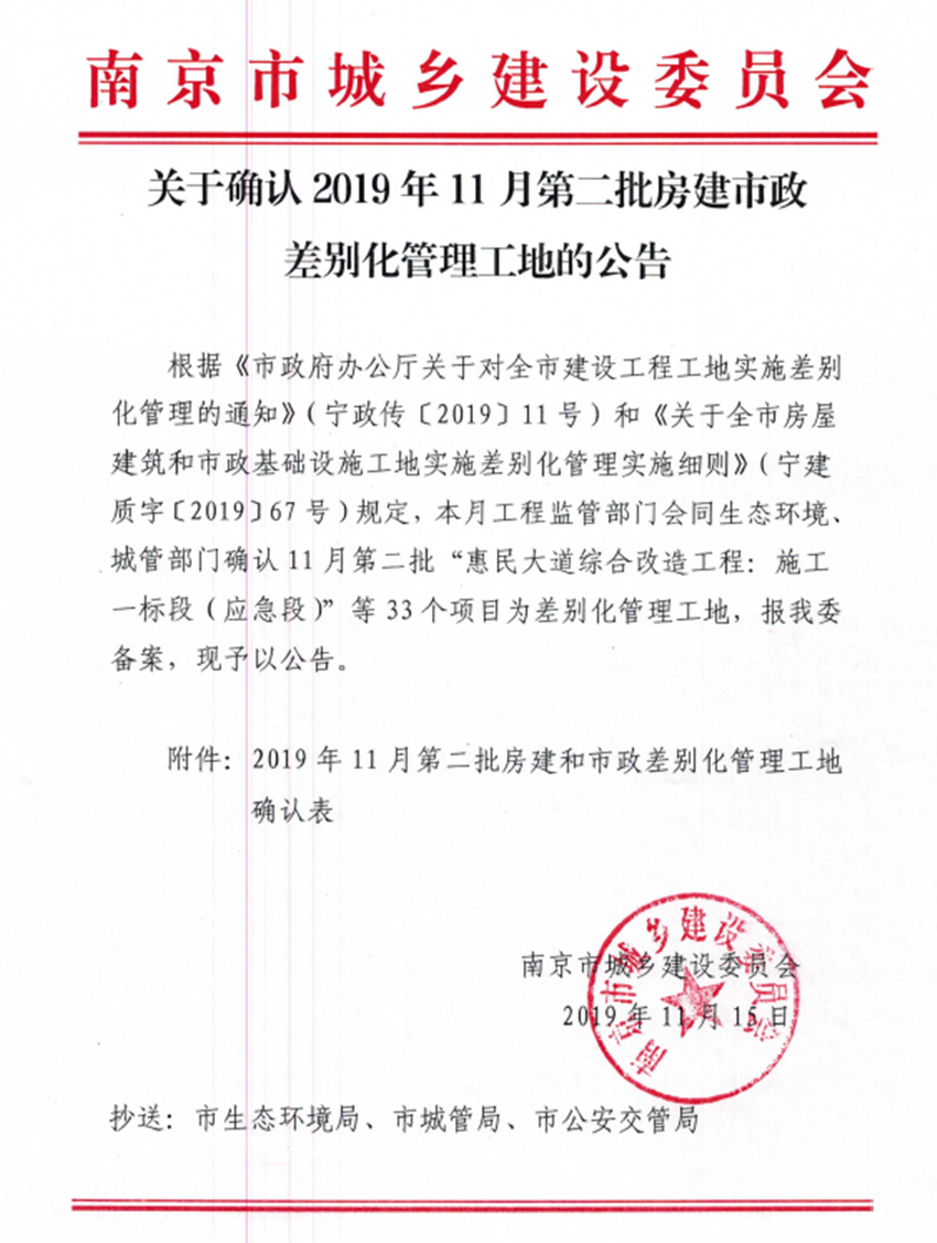 南京分公司將以此次獲批差別化管理工地為契機,按照集團精細化管理的要求,持續(xù)推進在建項目智慧工地建設、綠色施工和標準化施工,將差別化工地管理的一系列舉措融入平時的管理中,更進一步做好精細化管理。