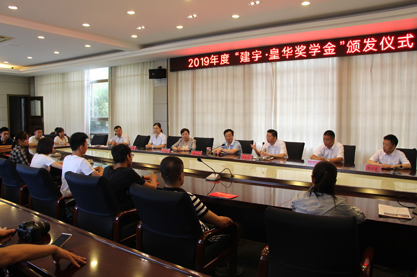 黃仁云校長代表學校發(fā)表了熱情講話,對建宇集團連續(xù)多年在高郵中學頒發(fā)建宇?皇華獎助學金表達了感謝和尊敬,同時對莘莘學子提出了追求“五業(yè)”的希望。儀式上,學生們認真觀看了建宇集團宣傳片,辦公室劉益成講解了建宇皇華獎助和人才培養(yǎng)計劃的PPT。與會領(lǐng)導(dǎo)共同為20名品學兼優(yōu)的建筑專業(yè)的同學們發(fā)放了獎學金。獲獎學生對學校和建宇集團的關(guān)心和培養(yǎng)紛紛表達了感謝。尤其對集團有針對性的新生培養(yǎng)計劃,從第一年的輪崗實習、因材施教,到第二年的內(nèi)部競聘、述職考核,直至最后的高管一帶一表達了濃厚的興趣。
