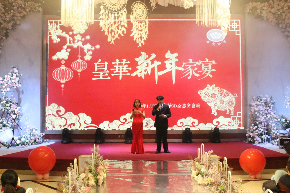 1月27日中午,由集團(tuán)皇華國(guó)際大酒店主辦的“夢(mèng)想起航再創(chuàng)輝煌”新年家宴在宴會(huì)大廳隆重舉行。集團(tuán)董事長(zhǎng)管民良、總經(jīng)理管民祥、副總經(jīng)理周耀庭、黃益寶、財(cái)務(wù)總監(jiān)郭正基、皇華國(guó)際大酒店董事長(zhǎng)王衛(wèi)紅、總經(jīng)理夏曉春、建宇機(jī)關(guān)員工及皇華的全體員工們參加了此次盛宴。