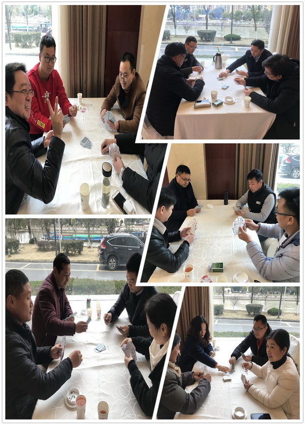 乒乓球緊張比賽的同時(shí),摜蛋比賽同時(shí)熱鬧進(jìn)行,本次摜蛋比賽采取循環(huán)淘汰賽模式,比賽現(xiàn)場(chǎng),公司領(lǐng)導(dǎo)、中層干部和普通員工同臺(tái)競(jìng)技,賽場(chǎng)上的氣氛十分活躍。選手們密切配合,沉著應(yīng)戰(zhàn),對(duì)陣雙方比牌技、比智慧,賽成績(jī)、賽友誼。大家切磋牌技、互相交流,增進(jìn)了友誼。經(jīng)過(guò)激烈的爭(zhēng)奪和層層淘汰,工程部的黎健和周軍同志奪得冠軍。