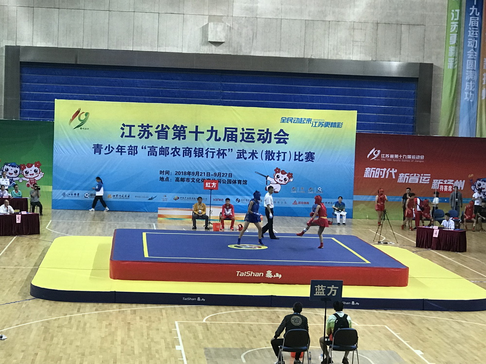 參賽的隊(duì)員們?cè)谫悎?chǎng)上“遠(yuǎn)則拳打腳踢,近則貼身快摔”。技巧打法都充分展示了中國(guó)武術(shù)的精湛技藝,小伙子小姑娘們個(gè)個(gè)都精神飽滿(mǎn),每招每式都力求做到穩(wěn)、準(zhǔn)、狠,充分展現(xiàn)了運(yùn)動(dòng)員們的拼搏精神??磁_(tái)上也熱鬧非凡,加油聲喝彩聲此起彼伏,大家暫時(shí)放下工作和煩惱,隨意而輕松的坐在場(chǎng)中觀看比賽,享受著四年一度的省運(yùn)會(huì)盛宴。第十九屆省運(yùn)會(huì)是揚(yáng)州改革開(kāi)放以來(lái)承辦的規(guī)模最大、持續(xù)時(shí)間最長(zhǎng)、參與人數(shù)最多的重大活動(dòng),與往屆省運(yùn)會(huì)散打比賽相比,本次比賽在人數(shù)、規(guī)格、范圍上有了較大突破,增添了新亮點(diǎn)、新魅力。各大高校大學(xué)生和武術(shù)愛(ài)好者積極參與。