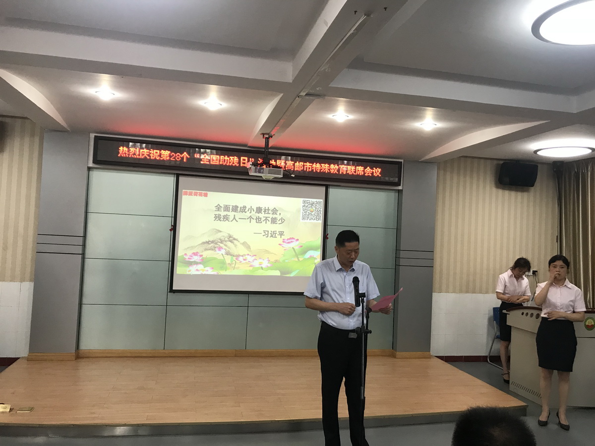 在第28個“全國助殘日”來臨之際,集團董事長管民良及皇華國際大酒店董事長王衛(wèi)紅來到高郵市荷花塘特殊教育學校參加“建宇?皇華愛心基金”發(fā)放儀式,看望全體師生,并送上慰問金。市教育局局長陸鵬海、市殘聯、市民政局、市財政局、市人社局等相關部門領導出席活動。