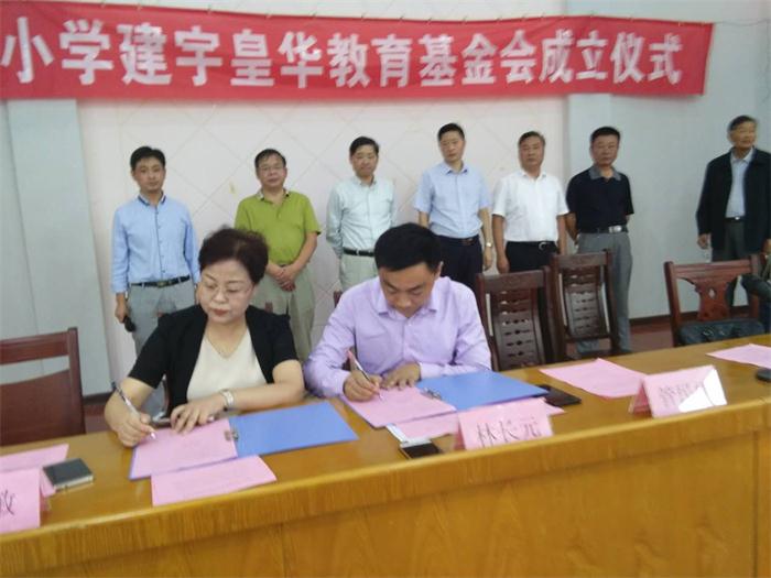 伯勤小學楊骎校長首先代表學校致歡迎辭,對建宇?皇華教育基金的成立表達了謝意和敬意?;嗜A國際大酒店王衛(wèi)紅董事長代表集團與伯勤小學楊骎校長簽署二十萬元基金捐贈協(xié)議。隨后伯勤小學教導主任張敏宣讀了《伯勤小學建宇?皇華教育基金會章程》,受助學生代表上臺發(fā)言,感謝學校和建宇集團的關心和培養(yǎng)。