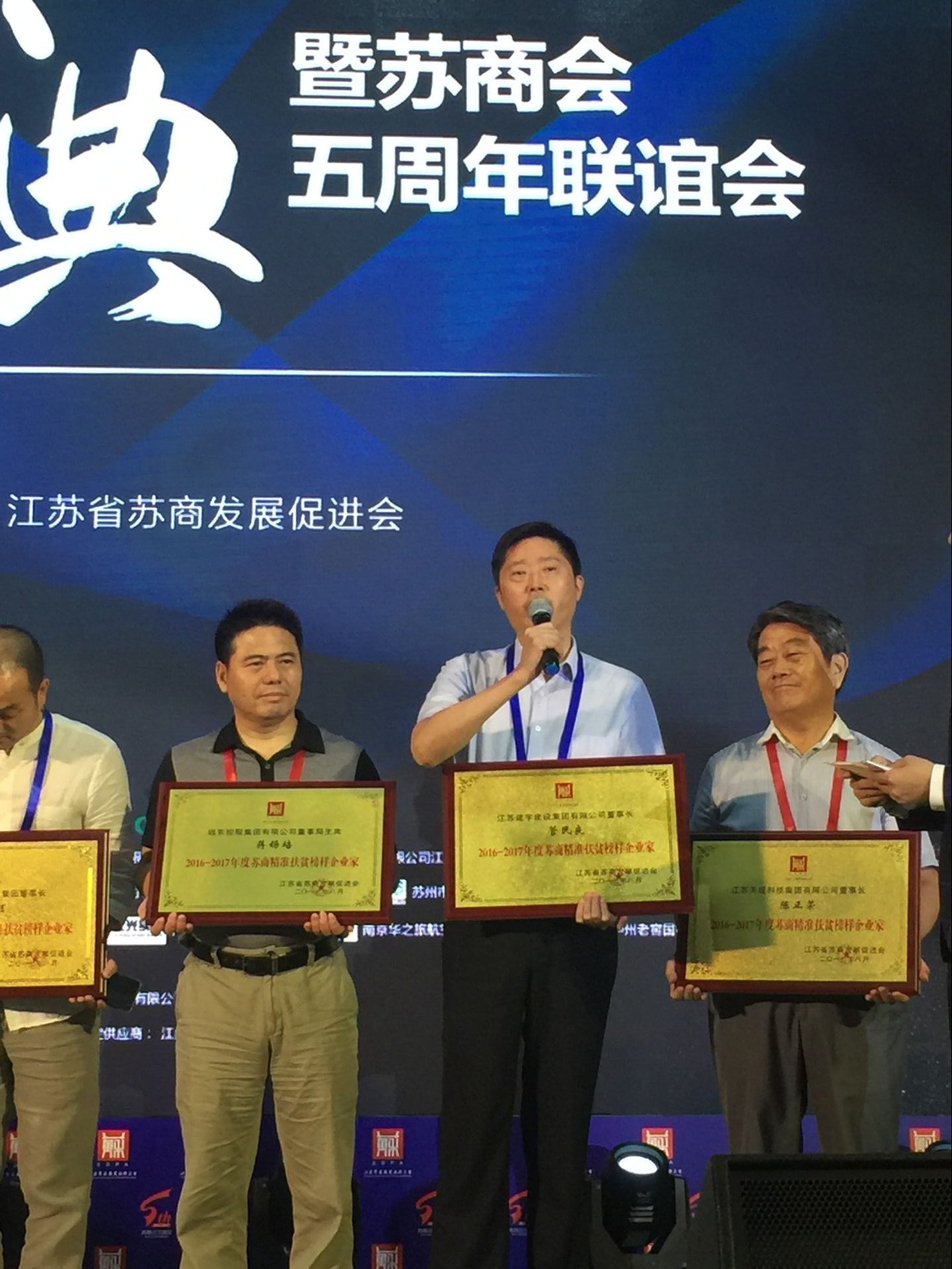 日前,江蘇省蘇商發(fā)展促進(jìn)會(huì)主辦的“實(shí)業(yè)強(qiáng)國 實(shí)力蘇商”系列推選頒獎(jiǎng)盛典在南京紫金山莊隆重舉行。蘇商會(huì)以獨(dú)立、客觀的立場(chǎng),對(duì)影響江蘇經(jīng)濟(jì)和社會(huì)發(fā)展的典型企業(yè)和企業(yè)家進(jìn)行推選和表彰。集團(tuán)榮獲“2016-2017年度江蘇地標(biāo)型企業(yè)”,同時(shí)董事長(zhǎng)管民良榮獲“2016-2017年度蘇商精準(zhǔn)扶貧榜樣企業(yè)家”獎(jiǎng)。