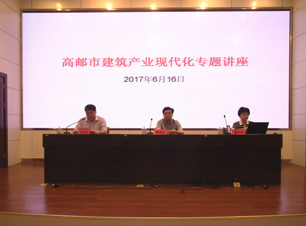 講座邀請(qǐng)了江蘇省建筑產(chǎn)業(yè)現(xiàn)代化推進(jìn)辦公室韓建忠副主任和江蘇省住房和城鄉(xiāng)建設(shè)廳科技發(fā)展中心孫雪梅高級(jí)工程師分別作題為“江蘇省建筑產(chǎn)業(yè)現(xiàn)代化發(fā)展現(xiàn)狀與趨勢(shì)”和“江蘇省裝配式建筑預(yù)制裝配率計(jì)算細(xì)則”的講解。兩位專(zhuān)家就傳統(tǒng)建筑業(yè)現(xiàn)狀及問(wèn)題闡述了建筑業(yè)目前面臨的困境,突出了企業(yè)尋求突破、轉(zhuǎn)型升級(jí)的重要性。同時(shí)講述了以新型建筑工業(yè)化生產(chǎn)方式為手段,以住宅產(chǎn)業(yè)現(xiàn)代化為重點(diǎn),以“標(biāo)準(zhǔn)化設(shè)計(jì)、工廠化生產(chǎn)、裝配化施工、成品化裝修、信息化管理、智能化運(yùn)營(yíng)”為主要特征的高級(jí)產(chǎn)業(yè)形態(tài)及其實(shí)現(xiàn)過(guò)程。