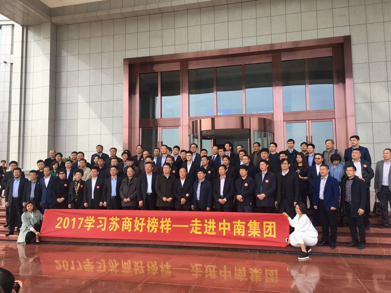 4月12日,江蘇省蘇商發(fā)展促進(jìn)會舉辦了一場以“創(chuàng)變,引領(lǐng)全新商業(yè)模式”為主題的商業(yè)“大趴”——學(xué)習(xí)蘇商好榜樣—走進(jìn)中南集團活動。建宇集團今年受邀加入蘇商會并作為副會長單位,董事長管民良與遠(yuǎn)東控股集團董事局主席蔣錫培、江蘇揚子江船業(yè)集團董事長任元林、寶勝集團有限公司總裁邵文林等在內(nèi)的60余位各行業(yè)標(biāo)兵企業(yè)掌舵手一同集中參觀了中南集團并參加交流會議,會議由蘇商會副會長兼秘書長俞文勤主持。