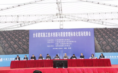 會前,與會人員觀摩了由中建三局集團有限公司承建的蘇州工業(yè)園區(qū)體育中心項目施工技術創(chuàng)新與質(zhì)量管理標準化現(xiàn)場和圖文展板。會上,省協(xié)會質(zhì)量與技術分會趙華中會長作工作報告,闡述了技術創(chuàng)新與質(zhì)量管理的重要性、企業(yè)和協(xié)會的各自任務。省住建廳領導紀迅同志作了重要講話,激勵各企業(yè)勇于創(chuàng)新,以中建三局蘇州體育中心項目為榜樣,取長補短,為江蘇在后續(xù)建筑業(yè)現(xiàn)代化改革中貢獻力量。