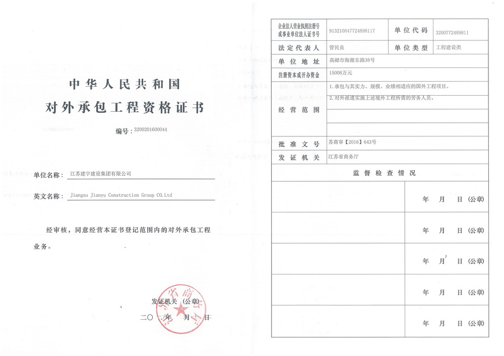 為響應(yīng)省政府加快推進全省建筑企業(yè)“走出去”的發(fā)展戰(zhàn)略,搶抓“一帶一路”的建設(shè)重大機遇,集團公司申報了“對外承包工程經(jīng)營資格證書”并于
