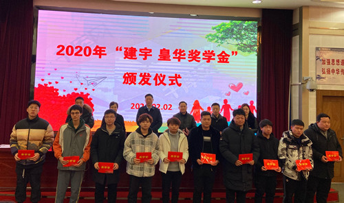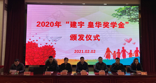 學(xué)習(xí)成就夢想,愛心點燃希望。繼集團元月開啟的卸甲鎮(zhèn)敬老院慈善活動首站之后,2月2日上午,因疫情影響而推遲的2020年度“建宇·皇華獎學(xué)金”頒發(fā)儀式在高郵中學(xué)報告廳舉行。集團董事長管民良、皇華國際大酒店董事長王衛(wèi)紅、集團副總經(jīng)理黃益寶、財務(wù)總監(jiān)郭正基,以及高郵中學(xué)呂所勇副校長、獲獎學(xué)生和家長代表等參加了發(fā)放儀式。儀式由高郵中學(xué)政教處主任顧福軍主持。這也是集團連續(xù)第五年在高郵中學(xué)頒發(fā)獎助學(xué)金。