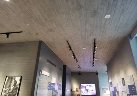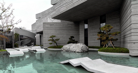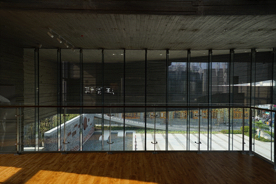 集團(tuán)成立技術(shù)攻關(guān)小組,克服施工困難,為達(dá)到弧形、凹凸,連續(xù)無(wú)通縫等各類木紋清水砼表面效果,室內(nèi)以10cm的統(tǒng)一模數(shù)適當(dāng)弱化肌理,避免喧賓奪主;室外則運(yùn)用了4cm、6cm、10cm三種模數(shù),在一層為通長(zhǎng)的肌理,二層出現(xiàn)長(zhǎng)短變化,給人帶來(lái)水波蕩漾的意象遐思。