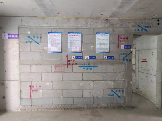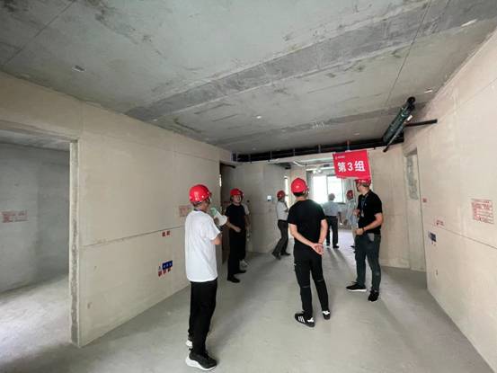 全體觀摩人員同樣分成了三組,在項目現(xiàn)場管理人員的帶領下深入施工場地,重點觀摩了14#樓、22#樓、26#樓粉刷施工工藝樣板、實測實量樣板;預制剪力墻、預制疊合板、預制樓梯、ALC板等施工成型質(zhì)量情況。