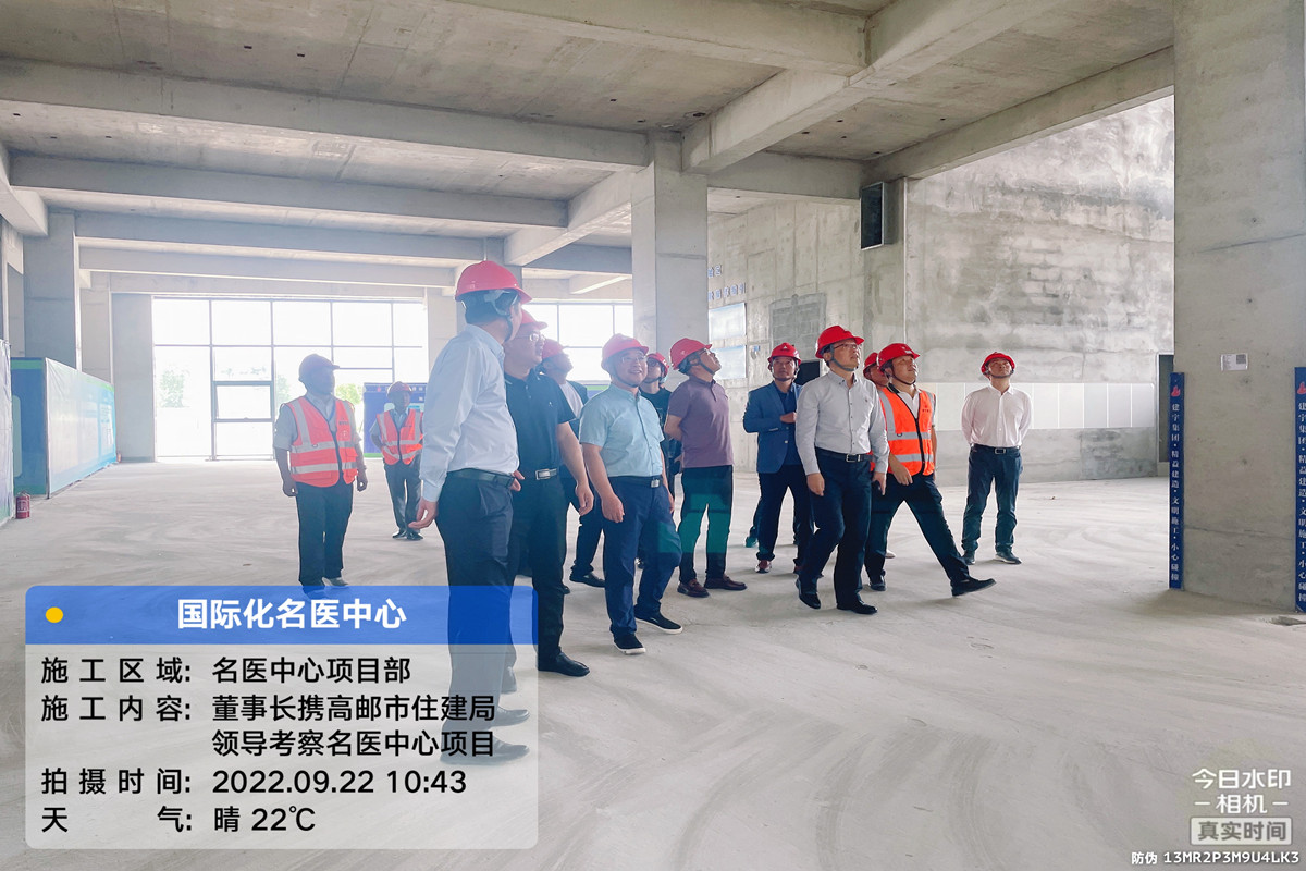 考察組一行在董事長(zhǎng)管民良的陪同下,先后考察了集團(tuán)南京分公司在建的江北新區(qū)國際化名醫(yī)中心項(xiàng)目和南京理工大學(xué)科研樓項(xiàng)目。
