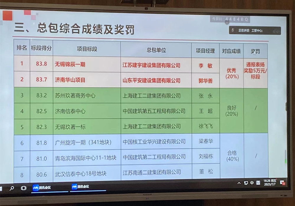 錦辰項(xiàng)目在中信泰富地產(chǎn)全國評比,多次取得較好成績,受到了主管部門、甲方、第三方咨詢機(jī)構(gòu)的好評。本次2023年第二輪工程評估中榮獲第一名的好成績,并獲獎勵5萬元,又一次證明集團(tuán)綜合實(shí)力和項(xiàng)目管理能力。