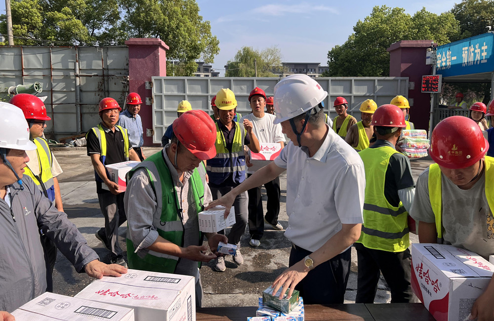 接著,董事長管民良等集團(tuán)高管將藿香正氣水、毛巾、花露水、飲用水等防暑降溫物品分別送到一線施工人員手中,向一線員工傳達(dá)集團(tuán)的關(guān)心問候,感謝他們在高溫下堅守崗位、奉獻(xiàn)付出,囑咐大家做好高溫防護(hù)措施,注重勞逸結(jié)合,保障身體健康。