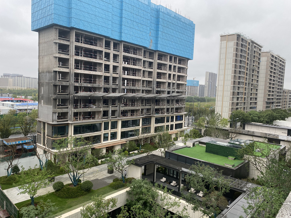 目前,項目是外裝飾、二次結(jié)構(gòu)、主體結(jié)構(gòu)的三階段同步施工,項目部按業(yè)主要求,與分包單位精心謀劃、組織實施。同時,為保證樣板展區(qū)訪客安全,項目部還創(chuàng)新采用了后掛式挑網(wǎng)等安全措施,進(jìn)一步提升了施工現(xiàn)場的安全保障水平。從外立面看,項目層次分明,立體感強(qiáng),展現(xiàn)出獨特的建筑美感。