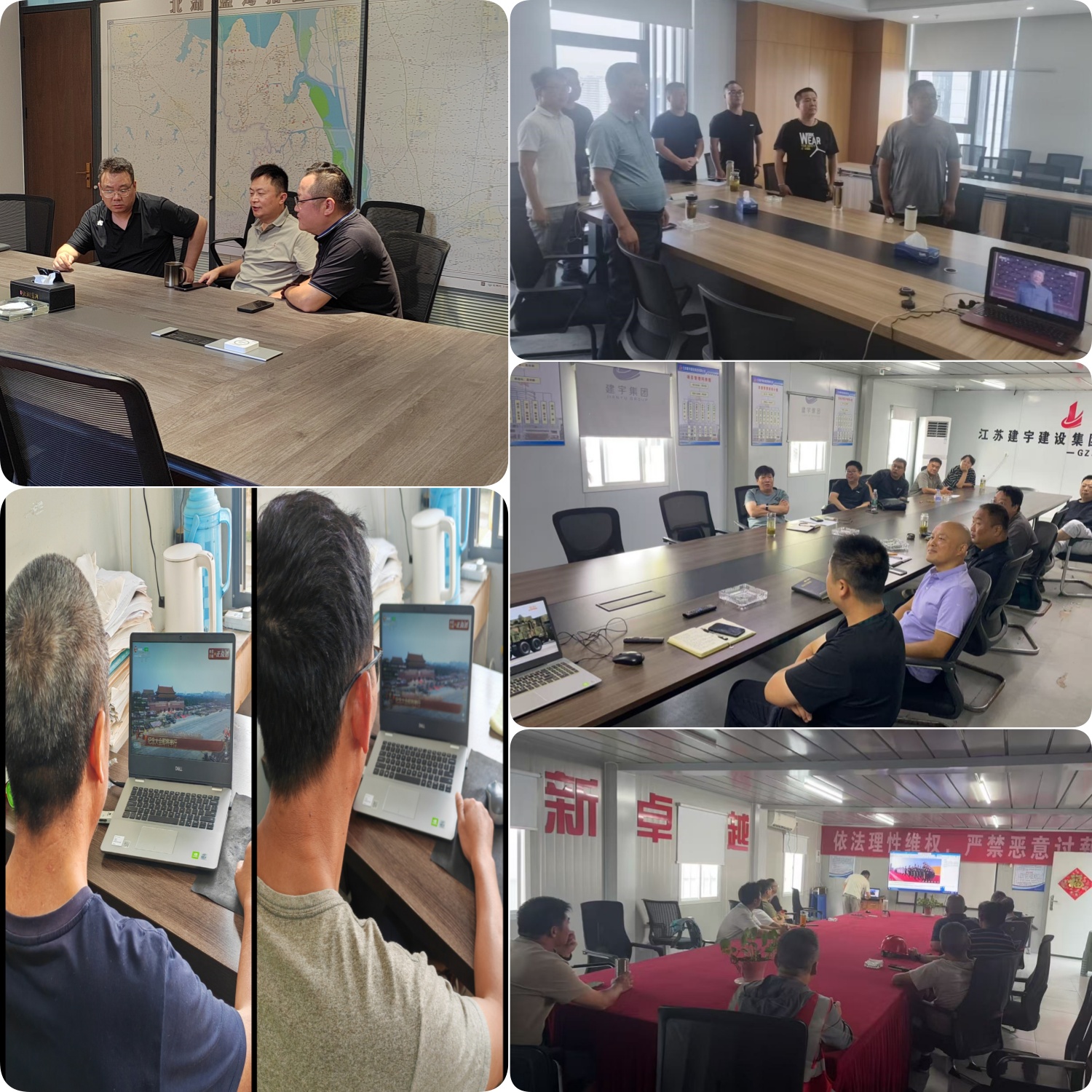 部分分公司組織機(jī)關(guān)員工在會(huì)議室集中觀看,氣氛熱烈莊重;各項(xiàng)目部則組織項(xiàng)目員工及勞務(wù)經(jīng)理部成員在項(xiàng)目會(huì)議室觀看,讓奮戰(zhàn)在一線的員工也能感受到閱兵的震撼與鼓舞;還有員工利用手機(jī)觀看實(shí)時(shí)直播,真正實(shí)現(xiàn)了全員觀看、全員參與、全員受教育,愛(ài)國(guó)主義的旗幟在每一個(gè)角落高高飄揚(yáng)。