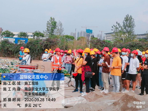 國(guó)際化名醫(yī)中心項(xiàng)目采用了工程總承包、裝配式、綠色智慧施工、BIM技術(shù)和項(xiàng)目管理平臺(tái)等多個(gè)建筑業(yè)前沿科技,得到了南京建委和多個(gè)高校建筑學(xué)院的關(guān)注。9月28日下午,該項(xiàng)目部施工現(xiàn)場(chǎng)又迎來(lái)了一百多名年輕的客人,他們來(lái)自南京農(nóng)業(yè)大學(xué)工學(xué)院,在領(lǐng)隊(duì)老師高新南的帶領(lǐng)下到項(xiàng)目部觀摩學(xué)習(xí)。集團(tuán)南京分公司副經(jīng)理兼國(guó)際化名醫(yī)中心項(xiàng)目負(fù)責(zé)人周月波等對(duì)他們進(jìn)行了熱情接待和認(rèn)真講解。